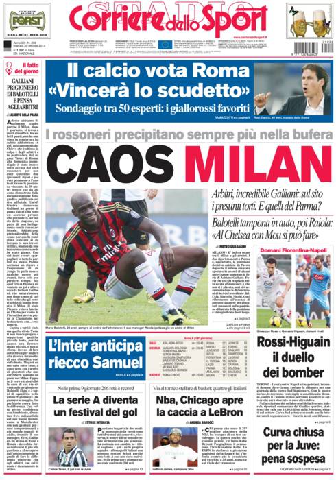 CORRIERE MILAN – Sul Corriere dello Sport si parla del momento negativo del Milan con la squadra che perde ancora, Galliani infuriato con l’arbitro e Balotelli che tampona.