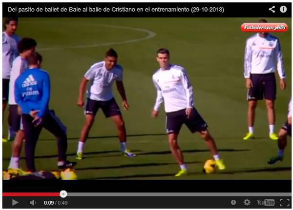 VIDEO BALE RONALDO REAL – La sconfitta subita dal Barcellona nell’ultimo turno di campionato, sabato scorso, non ha affatto scalfito lo spirito del club madrileno: in casa Real c’è infatti sempre voglia di mettersi in mostra attraverso grandi numeri dai propri fenomeni. In allenamento, come vi mostra questo video che vi proponiamo, sono Gareth Bale e Cristiano Ronaldo i veri mattatori, autori di numeri da capogiro. Pazzesco Bale, capace di fare un giro a 360° gradi con il tacco, rapidissimo CR7 con le sue innumerevoli finte. Ecco il video dello spettacolare allenamento della casada blanca: