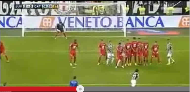 VIDEO PIRLO JUVENTUS – La Juventus ha terminato il primo tempo in vantaggio per 2-0 contro il Catania. Il secondo gol porta la firma di Andrea Pirlo, l’ex centrocampista del Milan. Proprio lui ha firmato un gran gol sugli sviluppi di un calcio punizione diretto. Come si vede nel video, nonostante una folta barriera, il portiere del Catania non riesce ad intervenire. Ennesima perla di Pirlo da calcio di punizone.