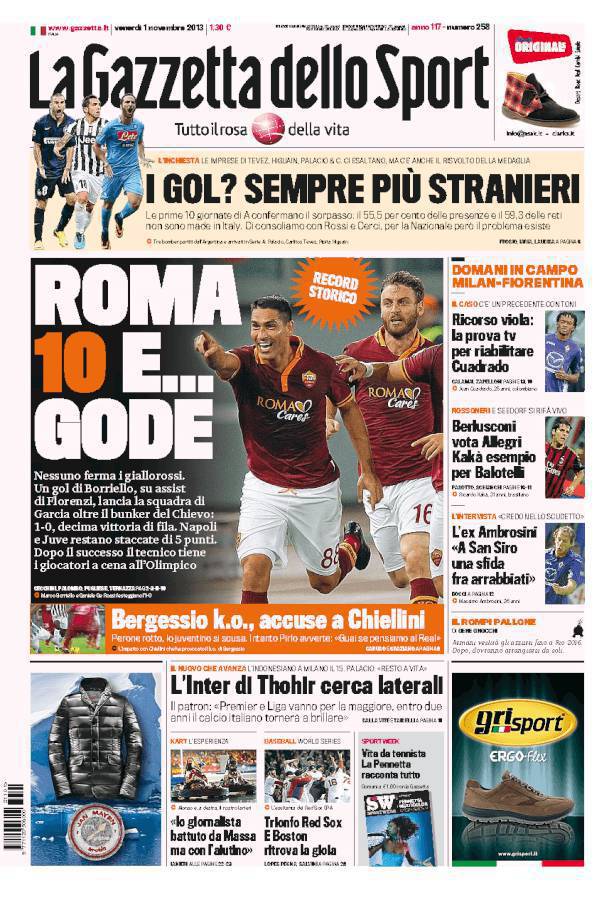 GAZZETTA ROMA – La Roma vince ancora, dieci vittorie su dieci partite per la squadra di Rudi Garcia.