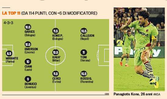 FOTO FANTACALCIO TOP TOP 11 10^ GIORNATA 114 PUNTI – Giornata ricca di gol quella conclusasi giovedì sera con il posticipo che ha consolidato sempre più la posizione della Roma capolista. Un 10° turno davvero interessante che, come sempre, è stato seguito con grande attenzione dai fantallenatori, attenti a non sbagliare una mossa anche in questo infrasettimanale. La Gazzetta dello Sport stamani, come sempre fa nel numero post conclusione del turno di Serie A, ha voluto mettere in campo la Top 11 della giornata di fantacalcio che, come potete notare nella grafica, è schierata questa settimana con un interessante 4-3-3-. 114 punti e 6 di modificatore: vittoria garantita!