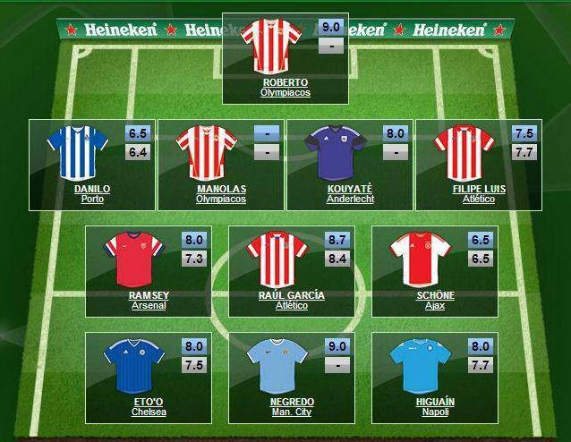 FOTO TOP 11 4^ GIORNATA CHAMPIONS LEAGUE HIGUAIN – E’ stata una giornata ricca di gol e di sorprese: il 4° turno di Champions League ha regalato gare intense e prestazioni magnifiche dei calciatori pronti a lottare per alzare a maggio la coppa dalle grandi orecchie. Uefa.com, sito ufficiale della federazione calcistica europea, ha come ogni turno stilato quella che è la Top 11 della giornata disputatasi in questa settimana, inserendo i migliori del turno. Spicca ovviamente Gonzalo Higuain, in avanti con Samuel Eto’o ed Alvaro Negredo, tutti e tre capaci di essere decisivi con le maglie di Napoli, Chelsea e Manchester City. In grafica il resto della formazione.