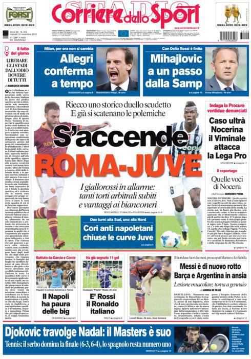 CORRIERE ROMA JUVENTUS – Sul Corriere dello Sport si parla di Roma-Juventus che è già una sfida molto calda.