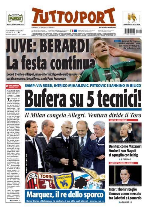 TUTTOSPORT TECNICI – Allegri per ora confermato, Rossi via, Sannino e Petkovic sono in bilico. Cambiano le panchine di Serie A.