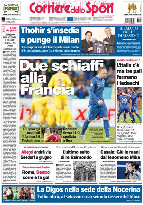 CORRIERE FRANCIA – Sul Corriere dello Sport si parla della Francia che perde due a zero contro l’Ucraina, Mondiali a rischio.