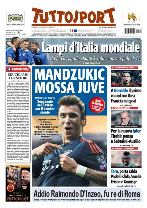 TUTTOSPORT MANDZUKIC JUVENTUS – Su Tuttosport si parla di Mandzukic, attaccante del Bayern Monaco, sondaggio effettuato da parte della Juventus.