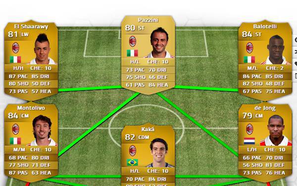 FOTO MILAN ALLEGRI 4-3-3 KAKA’ ATTACCO – Proprio come l’anno scorso, il Milan si ritrova a dover lottare in campionato per ritrovare quelle posizioni che, al momento paiono lontane anni luce. Bisognerà lavorare duro e trovare qualche nuova idea per permettere alla squadra rossonera di risalire una classifica al momento assolutamente deficitaria. Così, secondo quanto anticipato stamani dai maggiori quotidiani nazionali, Max Allegri, starebbe sperimentando delle nuove soluzioni per la sua squadra. Una su tutte, questo nuovo 4-3-3 che potete ben vedere in grafica. Kakà andrebbe in mediana a smistare palloni, come provato nella gara di ieri contro lo Young Boys, affiancato da Montolivo e De Jong. In attacco invece, Giampaolo Pazzini troverebbe posto in un tridente composto da Balotelli sulla destra ed El Shaarawy, largo a sinistra. Come potenza di fuoco ci siamo, ma siamo certi che la difesa possa reggere questo impianto di gioco?