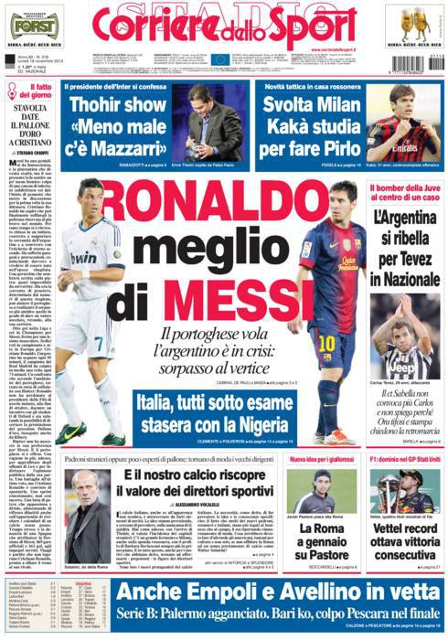 CORRIERE RONALDO MESSI – Sul Corriere dello Sport si parla di Ronaldo che sta facendo meglio di Messi, il sorpasso è compiuto.