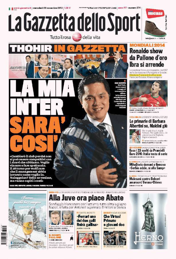 GAZZETTA THOHIR – Erick Thohir ieri in Gazzetta ha parlato della sua nuova Inter, ecco tutto il progetto dei nerazzurri.
