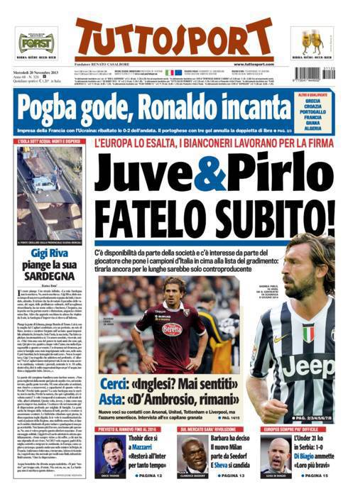 TUTTOSPORT JUVENTUS PIRLO – Su Tuttosport si parla di Pirlo alle prese con la decisione sul rinnovo del contratto con la Juventus.