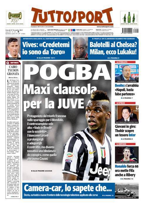 TUTTOSPORT POGBA – Su Tuttosport si parla di Pogba e della maxi clausola per la Juventus. Chi vorrà il francese dovrà pagare tanto.