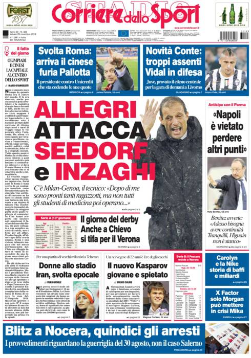 CORRIERE ALLEGRI – Ieri in conferenza stampa Allegri ha lanciato una critica indiretta a Inzaghi e Seedorf.