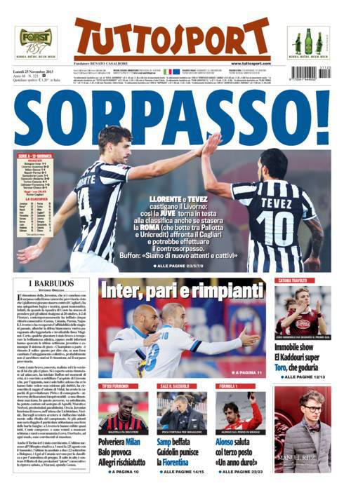 TUTTOSPORT JUVENTUS – Ovviamente il quotidiano torinese Tuttosport non poteva non parlare del ritorno in vetta della Juventus in attesa del match della Roma contro il Cagliari.