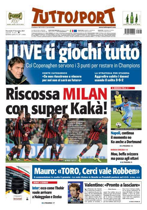 TUTTOSPORT JUVENTUS – Questa sera la Juventus dovrà vincere in casa contro il Copenhagen per qualificarsi agli ottavi di finale.