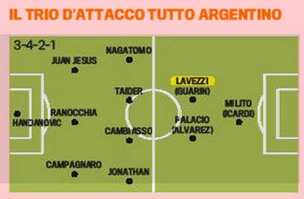 CALCIOMERCATO INTER LAVEZZI MAZZARRI – Walter Mazzarri vorrebbe un rinforzo per l’attacco e nel mirino sembra esserci Ezequiel Lavezzi, attaccante argentino del Psg, giocatore che ha già lavorato con Mazzarri a Napoli e ha fatto tante cose buone. Difficile però arrivare al Pocho, vuoi perché il Psg lo ha pagato circa 30 milioni di euro, vuoi perché ha un ingaggio importante. Ma se l’affare dovesse andare in porto l’Inter potrebbe avere un attacco atomico con Milito (se recuperato) o Icardi unica punta, con Lavezzi e Palacio dietro di lui. Insomma un tridente che farebbe sicuramente piacere all’allenatore toscano. Ecco la foto della Gazzetta dello Sport.