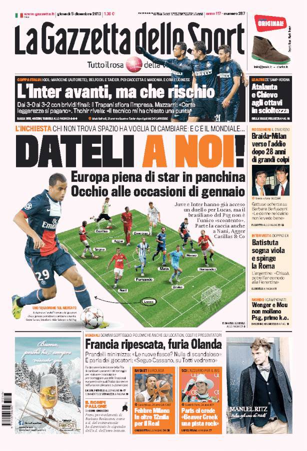 GAZZETTA MERCATO – Sulla Gazzetta dello Sport si parla dei grandi giocatori delle squadre europee che sono in panchina e piacciono alle italiane.