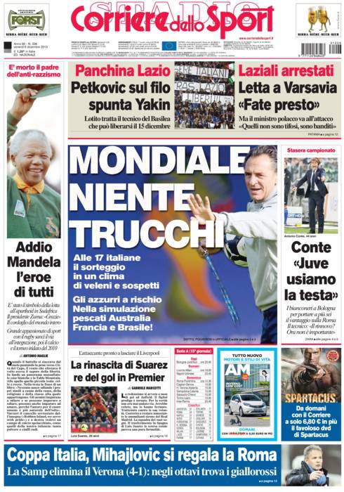 CORRIERE MONDIALI – Sul Corriere dello Sport si parla del sorteggio dei Mondiali che avverrà oggi alle ore 17 italiane.