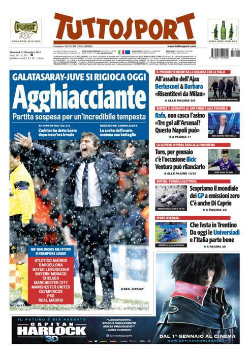TUTTOSPORT JUVENTUS – Galatasaray-Juventus sospesa per neve dovrebbe giocarsi oggi pomeriggio ma ci sono problemi di neve anche quest’oggi.