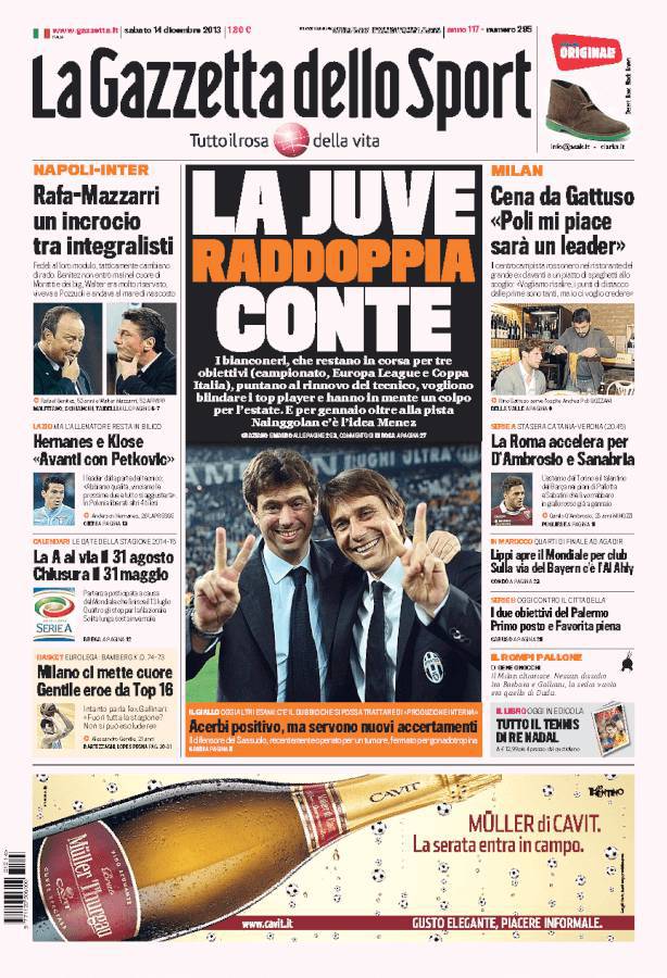 GAZZETTA CONTE JUVENTUS – La Gazzetta dello Sport rivela che la Juventus vorrebbe rinnovare il contratto ad Antonio Conte.
