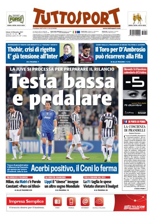 TUTTOSPORT JUVENTUS – Su Tuttosport si parla della Juventus che dovrà lavorare tanto per fare bene in vista della seconda parte di campionato.