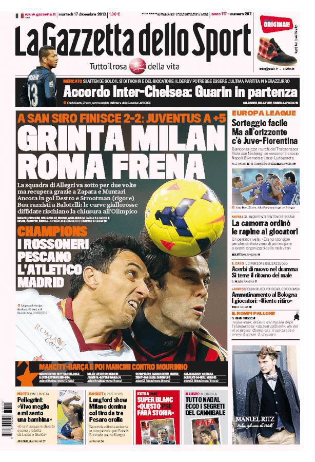 GAZZETTA MILAN ROMA – Sulla Gazzetta dello Sport si parla del pareggio tra Milan e Roma, i rossoneri fermano la squadra di Garcia.