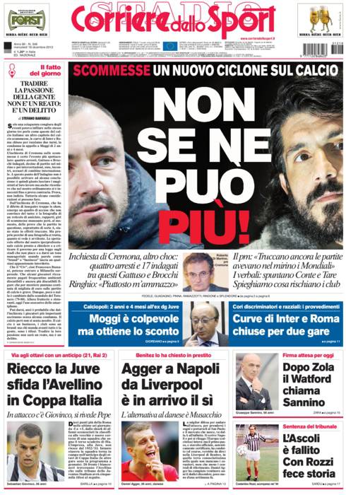 CORRIERE CALCIOSCOMMESSE – Anche il Corriere dello Sport parla del Calcioscommesse, indagati anche Brocchi e Gattuso. Nel mirino dei calciatori anche i Mondiali da truccare.