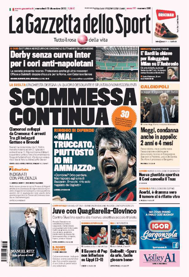 GAZZETTA SCOMMESSE – Altri sviluppi sull’inchiesta del Calcioscommesse, indagati anche Gattuso e Brocchi ex giocatori del Milan.