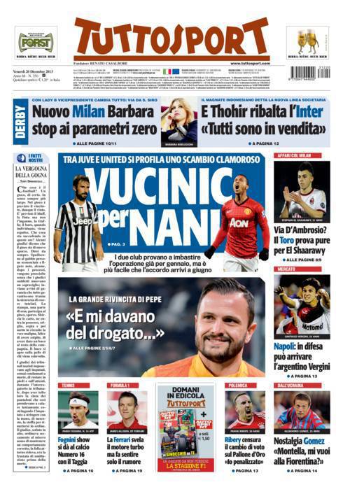 TUTTOSPORT VUCINIC NANI – Su Tuttosport si parla del possibile scambio tra Juventus e United con Vucinic in Inghilterra e Nani in bianconero.
