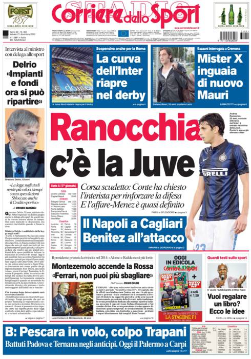 CORRIERE DELLO SPORT PRIMA PAGINA – Ranocchia c’è la Juve
