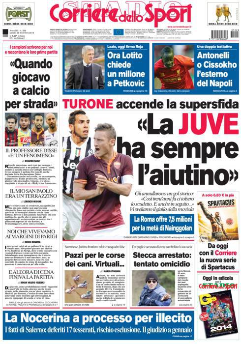 CORRIERE TURONE – L’ex giocatore della Roma Turone accende la sfida del 5 gennaio tra i giallorossi e la Juventus.