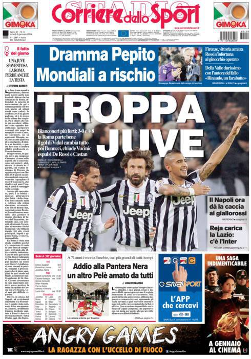 CORRIERE JUVENTUS – Anche il Corriere dello Sport elogia la Juventus, troppo superiore alla Roma di Rudi Garcia.