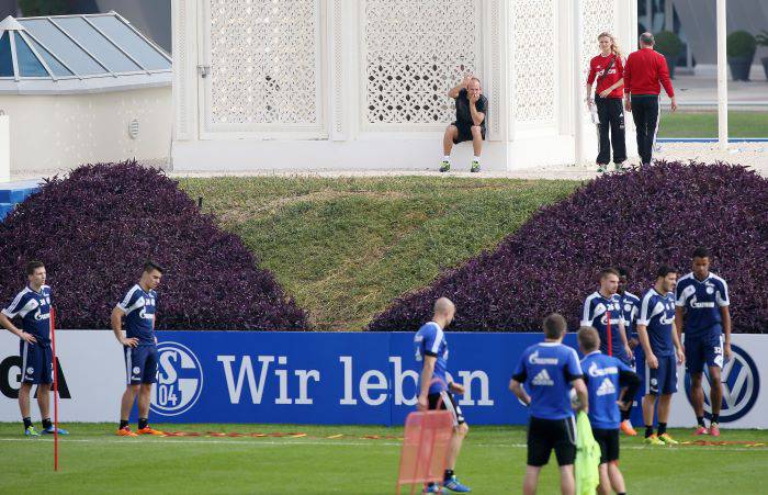 BAYERN MONACO ROBBEN SPIA LO SCHALKE 04- Come ogni anno la Bundesliga si ferma per oltre un mese. Fino al 24 gennaio le squadre tedesche non giocheranno partite ufficiali, anche di riposo non si può proprio parlare. Bayern Monaco e Schalke 04, ad esempio, stanno effettuando la preparazione atletica invernale in Qatar. Fra un allenamento e l’altro, la star olandese dei bavaresi, Arjen Robben, ha avuto il tempo per ossvervare la seduta atletica dei rivali dello Schalke. La Bild, noto giornale tedesco, lo ha beccato e subito fotografato (noi abbiamo messo la foto in primo piano). Alla ripresa del campionato il Bayern giocherà contro il Borussia Moenchengladbach in trasferta, lo Schalke in casa dell’Amburgo.