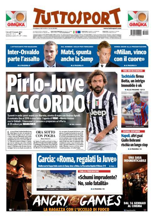 TUTTOSPORT JUVENTUS PIRLO – Tuttosport parla del rinnovo del contratto di Pirlo, ci sarebbe l’accordo con la Juventus.