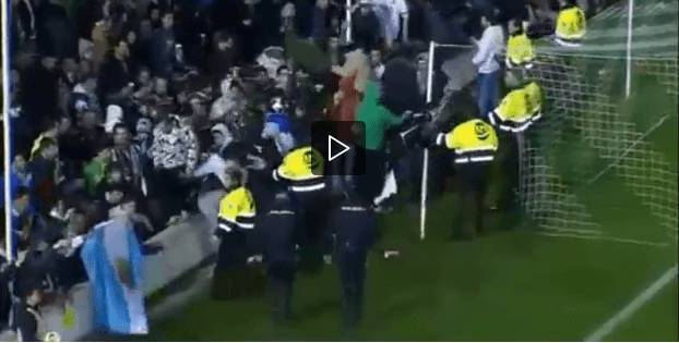 VIDEO ULTRAS SPAGNOLO PRENDONO A PUGNI IL PRESIDENTE – Se in Italia ci lamentiamo dei cori razzisti, in Spagna devono preoccuparsi di atti di vera violenza. I tifosi e i giocatori del Racing Santander, squadra di Segunda Division, si sono uniti per protestare contro il presidente del club Ángel Lavín a causa della crisi economica che sta attraversando la società. Il finimondo succede nel match contro l’Almeria negli ottavi di Copa del Rey. I calciatori che non ricevono lo stipendio da tre mesi, al fischio d’inizio restano immobili per venti secondi. Più violenti, invece, gli ultras che scavalcano le recinzioni, raggiungono la tribuna d’onore e prendo a calci il presidente.