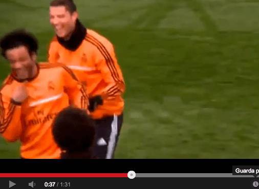 VIDEO ALLENAMENTO REAL MADRID – Cristiano Ronaldo è forse il giocatore che meglio unisce il lato ludico insito nel giocatore estroso al pragmatismo del fuoriclasse cristallino: il portoghese ci ha abituati da tempo a numeri da circo degni del miglior giocoliere e l’allenamento del Real Madrid è da sempre teatro delle invenzioni del numero 7 del Real. Lo è stato anche nell’allenamento di ieri: durante il più classico dei torello, CR7 ha messo in mostra uno dei suoi ‘trick’ e, come prevedibile, è scattata la polemica. Pepe, destinatario dello scherno del probabile prossimo Pallone d’oro, ha subito segnalato che il numero di Ronaldo era irregolare, visto il doppio tocco.