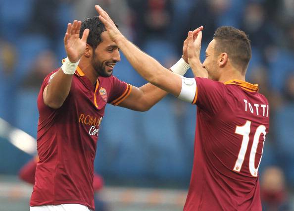 Roma (4-3-3): De Sanctis sv; Maicon 7,5 (82′ Jedvaj sv), Benatia 7, Burdisso 6,5, Dodò 6,5; Nainggolan 6.5, Strootman 7, Pjanic 6 (70′ Destro 6); Florenzi 7.5 (78′ Marquinho sv), Totti 7, Gervinho 6.5. A disp.: Skoruspki, Lobont, Torosidis, Taddei, Ricci, Borriello, Caprari. All.: Garcia.