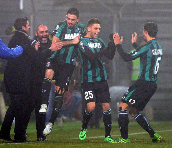 SASSUOLO (4-3-3): Pegolo 6,5; Gazzola 6,5, Antei 5,5, Ariaudo 6, Longhi 6; Kurtic 6,5 (87′ Marzorati s.v.), Magnanelli 6, Chibsah 6; Ziegler 6, Zaza 6,5 (84′ Floro Flores s.v.), Berardi 9 (78′ Schelotto s.v.). A disp.: Pomini, Rosati, Pucino, Rossini, Missiroli, Valeri, Farias, Gliozzi. All.: Di Francesco.