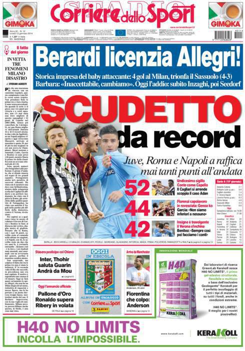 CORRIERE SCUDETTO – Sul Corriere dello Sport si parla della marcia di Juventus, Roma e Napoli che stanno viaggiando a suon di record.