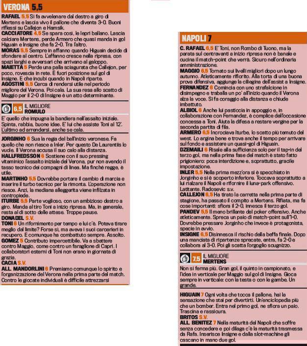 FOTO VERONA NAPOLI VOTI PAGELLE GAZZETTA MERTENS ROMULO – Il Napoli strapazza il Verona al Bentegodi vincendo tre a zero. La squadra di Benitez appare molto in forma trascinata da un super Mertens, ancora in gol e fisicamente molto avanti rispetto a tutti. Da manuale anche la prova di Higuain, attaccante sublime, dotato di intelligenza tattica fuori dal normale. Si rivede il Maggio dei bei tempi, mentre Insigne segna il suo primo gol in campionato. Nel Verona si salva solo Romulo, centrocampista che non molla mai. Voti e pagelle della Gazzetta dello Sport.