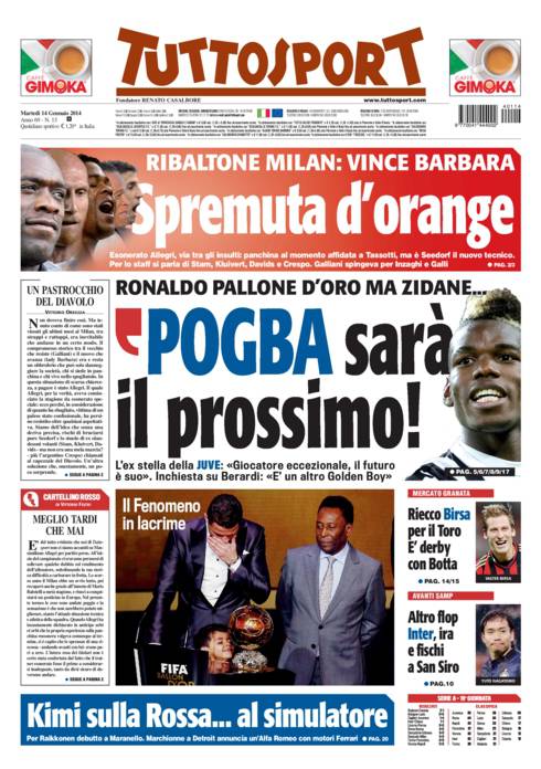 TUTTOSPORT POGBA – Su Tuttosport si parla di Pogba, con Zidane che lo vede Pallone d’Oro del futuro.