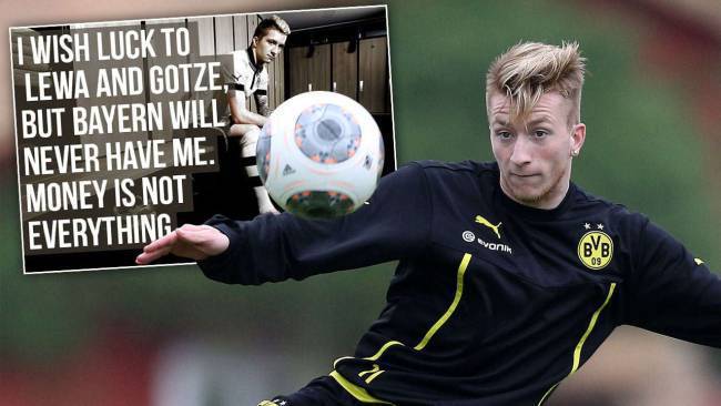 CALCIOMERCATO BORUSSIA DORTMUND MARCO REUS- Marco Reus non ci sta. Negli ultimi giorni girava sul web una sua foto (che vi abbiamo messo in primo piano) nella quale venivano riportate le seguenti dichiarazioni: “Auguro molta fortuna a Lewandowski e Goetze, ma il Bayern Monaco non mi avrà mai. I soldi non sono tutto”. In realtà, per il dispiacere dei tifosi del Borussia Dortmund, tali dichiarazioni non erano veritiere. Lo ha precisato proprio Reus in un’intervista rilasciata alla Bild: “E’ un Fake. Non ho mai detto una cosa del genere e non la direi mai”. Anche lui sta già preparando le valige?