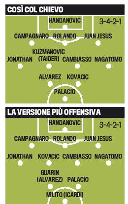 FOTO MAZZARRI MODULO OFFENSIVO INTER – L’Inter non sta vivendo un momento positivo, contro il Chievo in casa è arrivato un pareggio, la zona Champions League si allontana sempre di più. I nerazzurri vorrebbero cambiare la rotta, Mazzarri spera che dal mercato possa arrivare qualcosa di positivo. Per ora il tecnico toscano pensa a un cambio di modulo che possa aumentare le sortite offensive. Si passerà dal 3-5-1-1 al 3-4-2-1 con un attaccante centrale come Milito o Icardi e due trequartisti ovvero Palacio e Guarin o Alvarez. Kovacic a centrocampo con Cambiasso. Mazzarri prova una squadra più offensiva. Ecco la foto della Gazzetta dello Sport.
