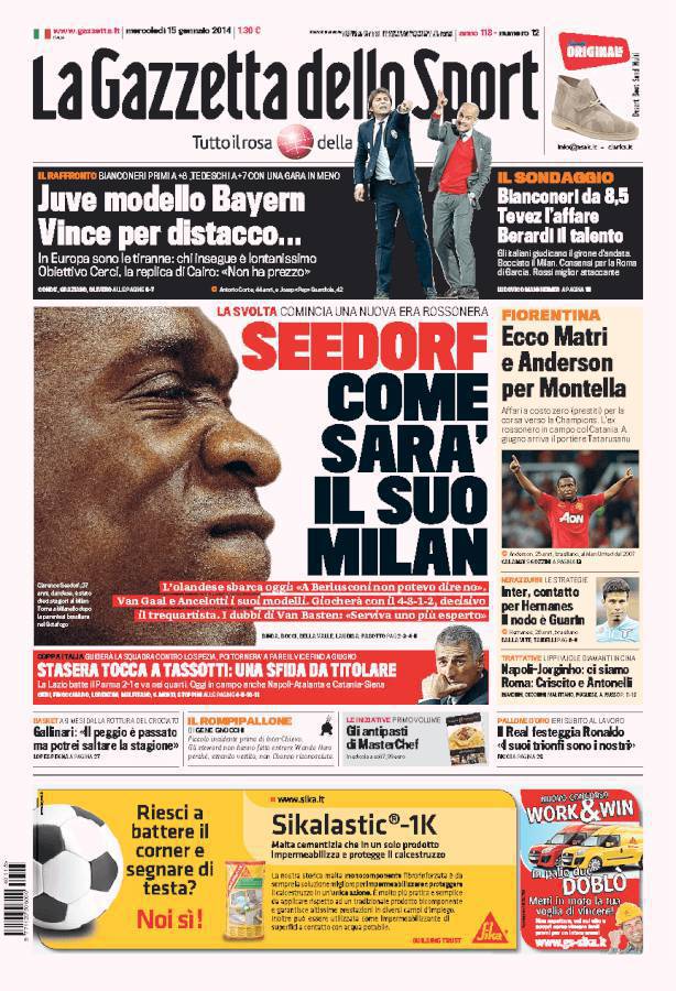 GAZZETTA SEEDORF – La Gazzetta dello Sport parla del Milan di Seedorf che sarà il nuovo tecnico dei rossoneri.