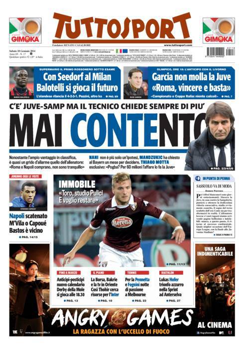 TUTTOSPORT CONTE – Ieri durante la conferenza stampa prima del match contro la Sampdoria, il tecnico della Juventus Conte ha parlato di Napoli e Roma che si sono rinforzate durante le sessioni di mercato.
