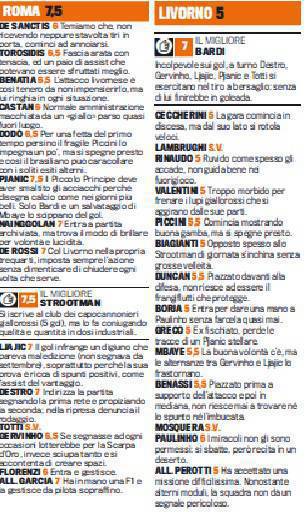 FABTACALCIO ROMA LIVORNO – Una grande Roma ha battuto in scioltezza il Livorno allo stadio Olimpico con un netto 3-0. Nonostante in campo non ci fossero Maicon, Nainggolan e Totti, la squadra ha dimostrato di essere forte e di avere finalmente i ricambi giusti. Ad andare a segno contro gli amaranto sono stati Mattia Destro, Strootman e Ljajic. Il risultato poteva essere anche più ampio ma Bardi è stato bravo a respingere gli attacchi giallorossi. La squadra di Rudi Garcia, dunque, non molla e continua ad inseguire la Juventus contro la quale scenderà in campo martedì in Coppa Italia. Per tutti gli amanti del fantacalcio, ecco i voti e le pagelle della Gazzetta dello Sport.