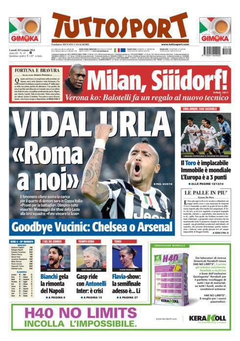 TUTTOSPORT VIDAL – Vidal parla del match di Coppa Italia tra Juventus e Roma in programma domani sera.