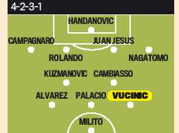 FOTO VUCINIC INTER MAZZARRI MODULO – L’arrivo di Mirko Vucinic all’Inter potrebbe permettere al tecnico Walter Mazzarri un cambio nel sistema di gioco. Il tecnico toscano potrebbe mettere da parte il suo credo calcistico, ovvero la difesa a tre, per puntare su una difesa a quattro. Questo perché in avanti Mazzarri potrebbe puntare sulla linea dei tre trequartisti, ovvero Alvarez-Palacio-Vucinic dietro la punta Milito. A centrocampo la cintura verrebbe formata da Kuzmanovic e Cambiasso. Ma Vucinic potrebbe agire anche da seconda punta dietro Palacio o da prima punta. Insomma tante varianti per il montenegrino. La foto della Gazzetta dello Sport.