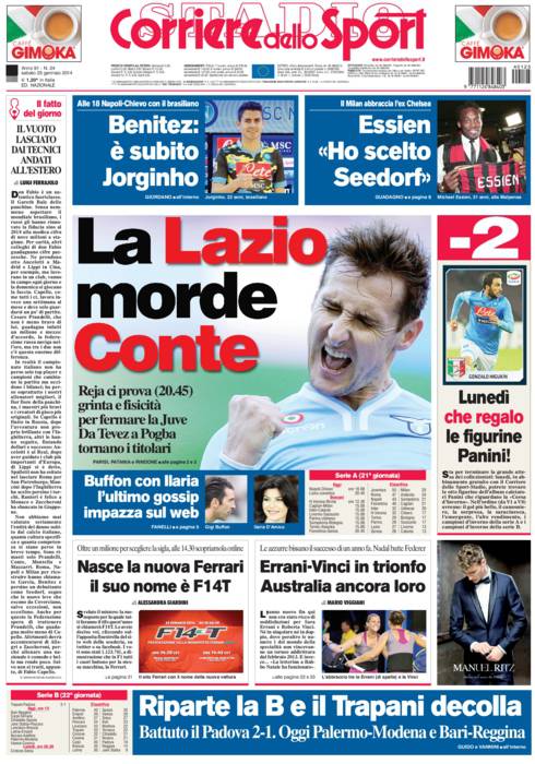 CORRIERE LAZIO CONTE – Sul Corriere dello Sport si parla della Lazio che questa sera cercherà di fermare la Juventus di Antonio Conte.