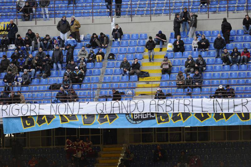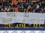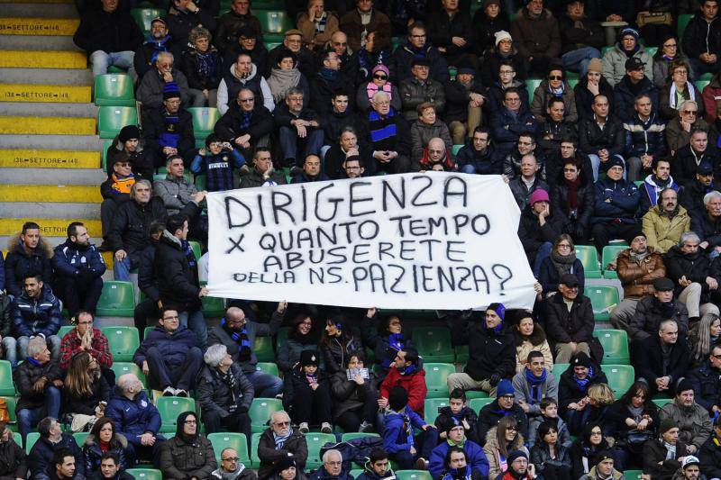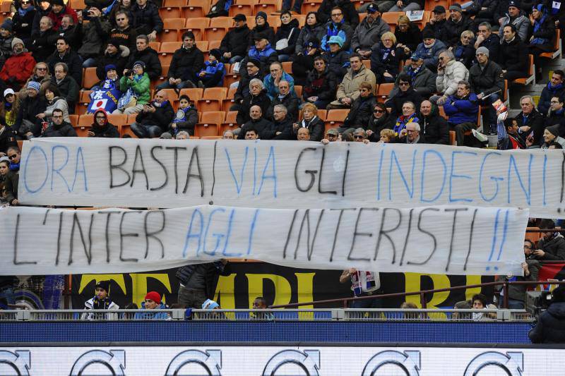 FOTO CONTESTAZIONE TIFOSI INTER – Dopo la dura settimana che ha dovuto affrontare l’Inter in seguito allo scambio, poi saltato con la Juventus che avrebbe dovuto portare Vucinic in nerazzurro e Guarin in bianconero, la squadra di Mazzarri è scesa nuovamente in campo contro il Catania per la gara valida per la seconda giornata del girone di ritorno del campionato di serie A. A San Siro, oltre a Massimo Moratti, è presente anche il neo presidente Erik Thohir. Sugli spalti dura è stata la contestazione dei tifosi nerazzurri che non hanno risparmiato nessuno con striscioni rivolti contro la società. Ecco le foto degli striscioni pubblicate da Tuttomercatoweb.