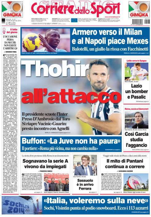 CORRIERE INTER – Erick Thohir scatenato, preso D’Ambrosio dal Torino, potrebbe riprendere la trattativa Vucinic-Guarin.